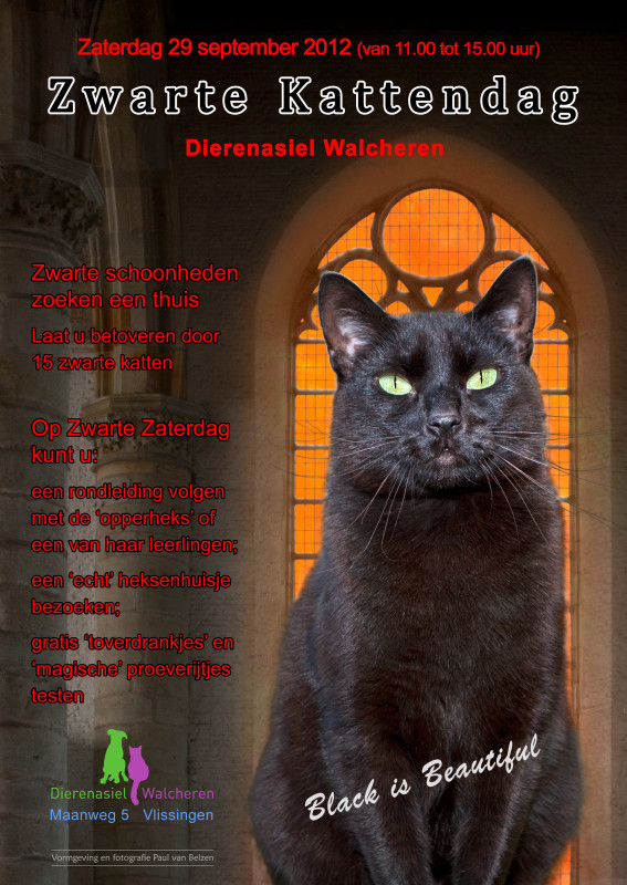 Een rondleiding door een heuse heks, toverdrankjes en magische lekkernijen. Op zaterdag 29 september staan we wel op een heel bijzondere manier stil bij de jaarlijkse dierendag. Wij organiseren dan van 11.00–15.00 uur De Zwarte Kattendag. Het is de bedoeling dat alle zwarte katten in het dierenasiel op deze dag een nieuw baasje krijgen.