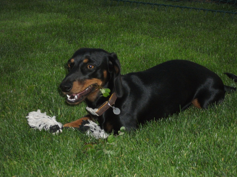 Inmiddels is Cato geplaatst bij hele fijne mensen die helemaal teckel-gek zijn. Dat was direct te zien want Cato vond de mevrouw die kwam kijken meteen geweldig en andersom natuurlijk ook. Ze woont nu bij nog een andere teckel en gaat een aantal dagen per week naar de oppasoma die óók nog twee teckels heeft. En dat is voor Cato natuurlijk een feestje, want dat betekent spelen en ravotten. Wij wensen de mensen heel veel Cato-plezier toe.