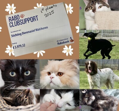 Ook dit jaar hebben we weer een mooi bedrag gekregen van de Rabobank Club Support actie. Wéér eindigden we op de eerste plaats dank zij alle trouwe dierenliefhebbers die op ons stemden. Hartelijk dank daarvoor namens alle dieren die in het asiel opgevangen worden!