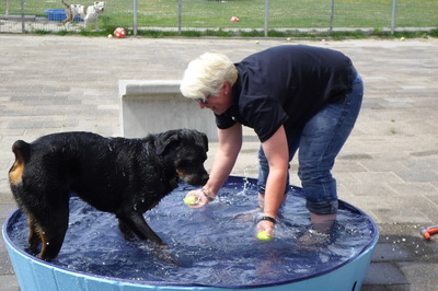 Door deze coole verrassing, kunnen we de honden op warme dagen een beetje fun en afkoeling geven! Spike, de hond op de foto, heeft er in elk geval al met volle teugen van genoten (en één van de medewerksters stiekem ook)!