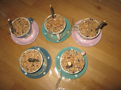 Deze bijzondere vogelvoer-kopjes werden verkocht en brachten maar liefst 45 euro op. Een mooi initiatief!