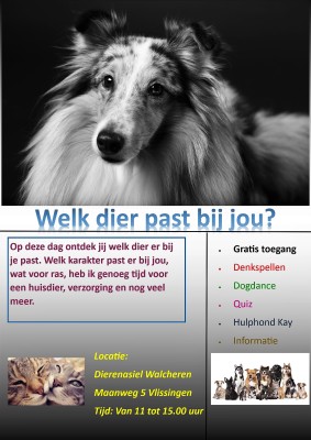 Op deze dag kun je ontdekken welk dier er bij jou past (hond of kat) of je genoeg tijd voor een huisdier hebt en welke verzorging het nodig heeft.