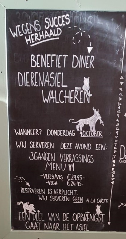 Het wordt een mooie én smakelijke traditie: Het jaarlijkse Dierendag Verrassings Diner in Stadscafé De Dighter, Bellamypark 30 in Vlissingen. Tafelen in een gezellige sfeer en voor een goed doel (een gedeelte van de opbrengst wordt geschonken aan het dierenasiel Walcheren).