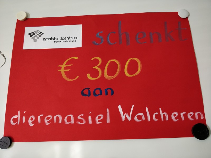 Onlangs is deze verrassing (en wát voor een!) door juf Marjolijn overhandigd aan asielbeheerder Melanie tijdens een bijeenkomst op de school. De leerlingen, 40 in totaal, hadden maar liefst 300 euro bij elkaar gespaard voor de asieldieren! Een hele grote prestatie!