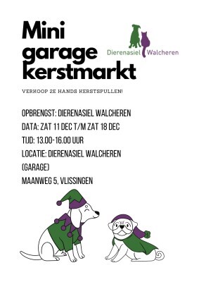Het is zo langzamerhand weer tijd om de kerstboom binnen te halen en de kerstballen tevoorschijn te halen! De tijd van gezelligheid, warmte en heel veel lichtjes is weer aangebroken. Bent u nog op zoek naar mooie kerstspullen? Kom dan eens een kijkje nemen op onze mini-garage-kerstmarkt. Hier zullen we tweedehands kerstspullen verkopen voor een klein prijsje. Natuurlijk is de gehele opbrengst voor het dierenasiel Walcheren.