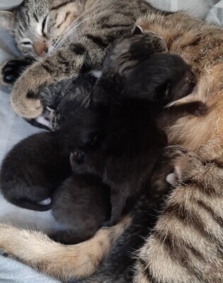 Vervolgens kregen we deze week ook het eerste zwangere poesje van het jaar binnen. Ze heet Mini en is inmiddels bevallen van 6 gezonde kittens en ze verblijft in een pleeggezin. Natuurlijk zijn deze kittens nog niet te reserveren, dat doen we pas als ze een stukje ouder zijn en we zeker weten dat alles goed met ze gaat. Maar we zijn zo trots op Mini dat wel al graag een foto met jullie delen. Willen jullie graag meer volgen van Mini en andere pleegkatten? Er is een facebook pagina die wordt beheerd door enkele pleeggezinnen. Zij houden je op de hoogte van al hun belevenissen. Neem hier een kijkje.