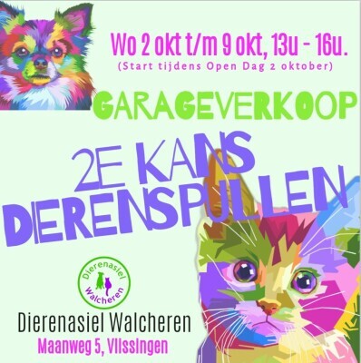 Op woensdag 2 oktober is er weer een Open dag bij het Dierenasiel Walcheren. Rondom de open dag, om precies te zijn 2 t/m 9 oktober van 13.00 uur tot 16.00 uur zal er weer een garageverkoop met allemaal 2e kans-spullen voor dieren plaatsvinden.