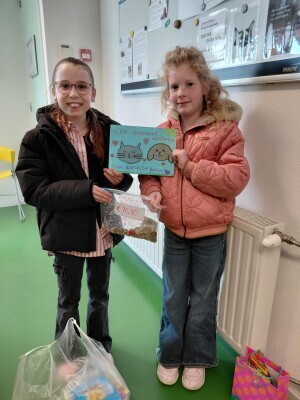 Deze twee lieve meiden hebben helemaal op eigen intitatief geld en snoepjes voor de dieren in het asiel ingezameld!! En dat kwamen ze zelf brengen!